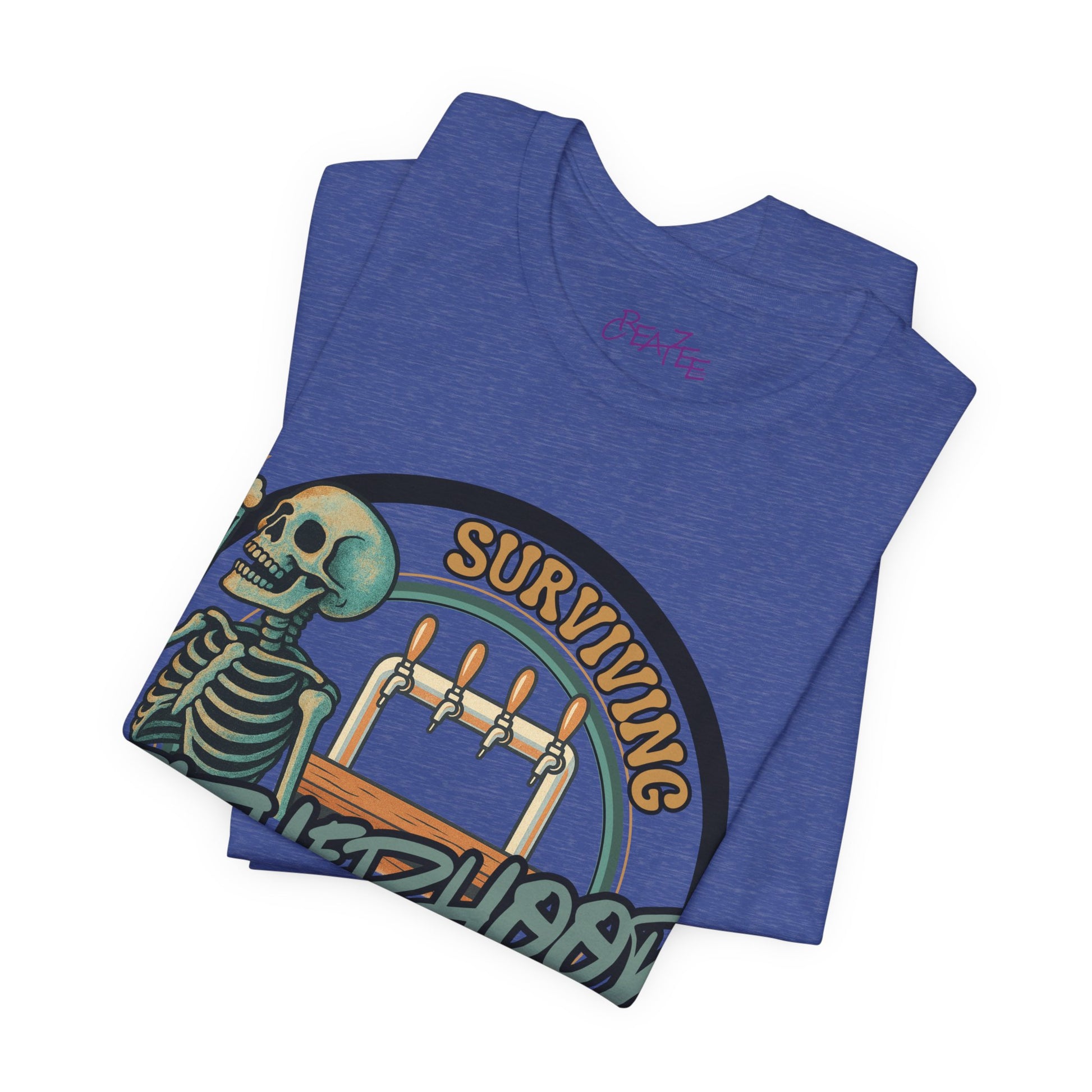 This tee is for the dads doing their best, laughing through the chaos, and keeping the fridge stocked for emotional support. Featuring a chill skeleton with a beer and brewery taps in the background, itβs sarcastic, relatable, and premium enough for everyday wear.