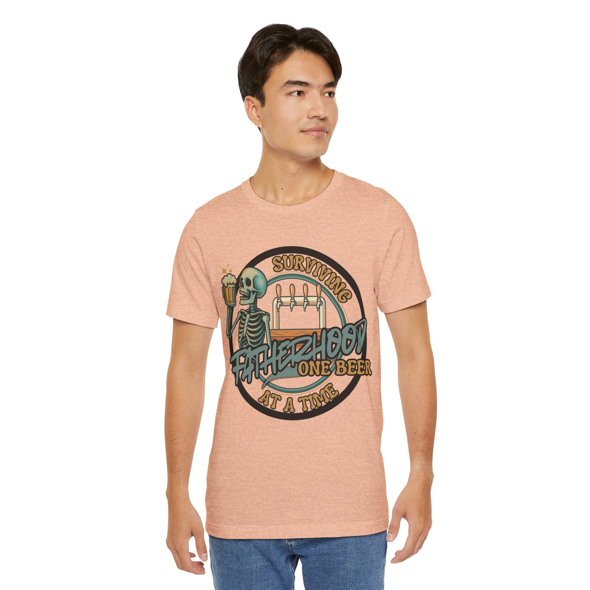 Dad Heather Tee β Surviving Fatherhood One Beer at a Time β’ Funny Dad Beer Shirt β’ Bella Canvas 3001